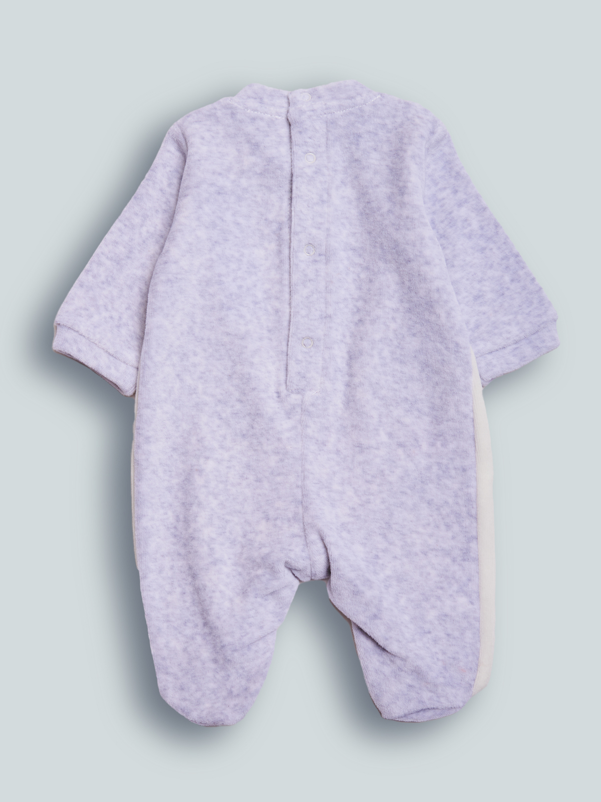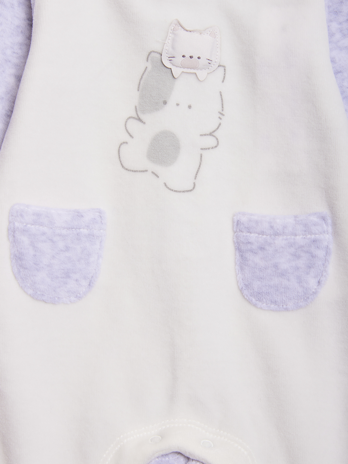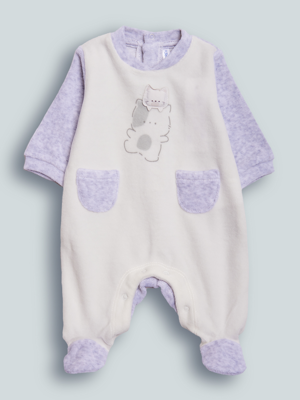 Pigiama manica lunga per neonato. Girocollo serafino. Chiusura con bottoni a pressione per agevolarne l’indosso. Soffice ciniglia latte e grigio melange per tenere al caldo il nostro neonato. Elemento decorativo: simpatica grafica stampata con etichetta imbottita. Questo pigiamino fa parte del corredino composto da tutti gli articoli indispensabili per il tuo neonato.