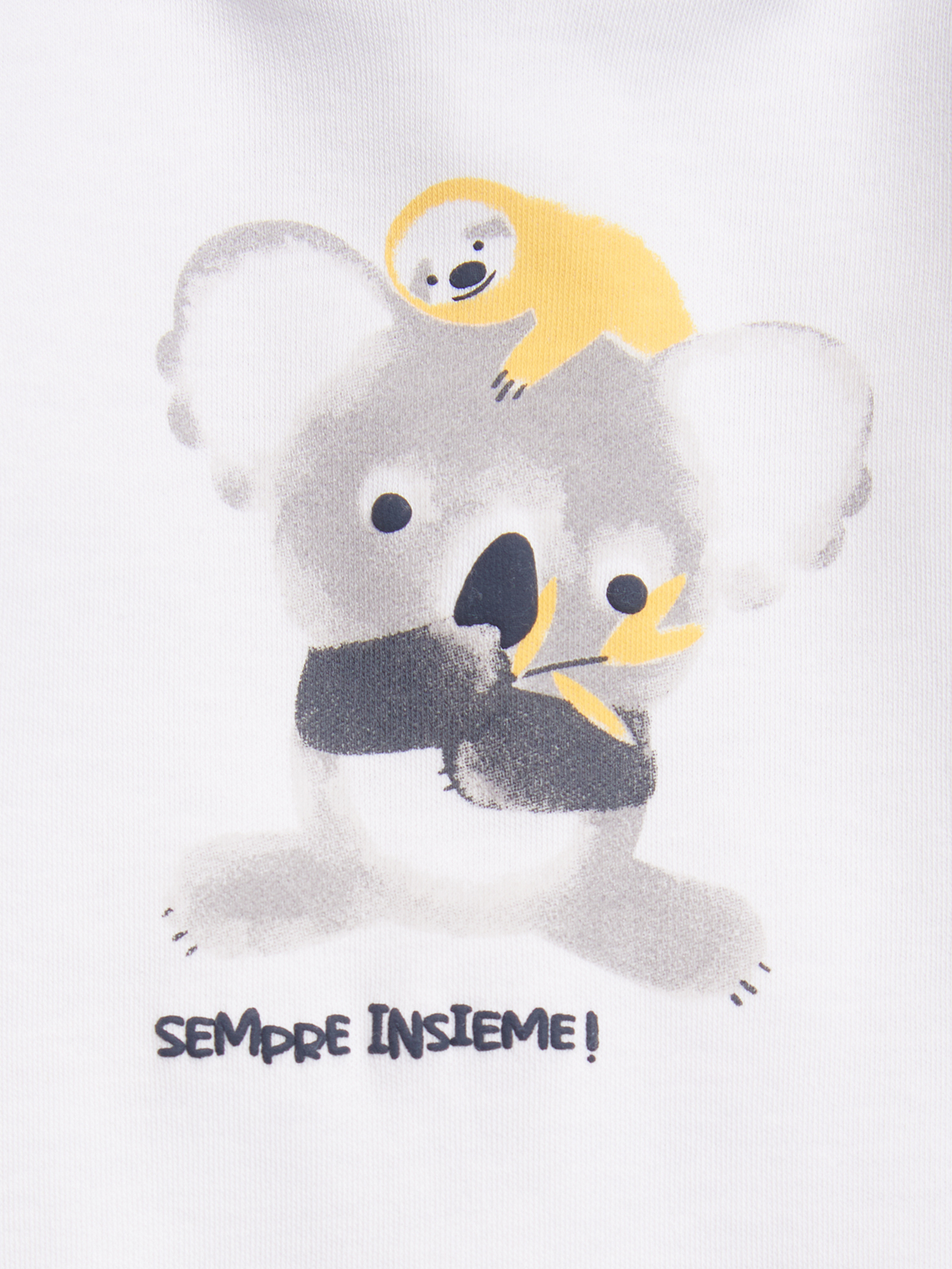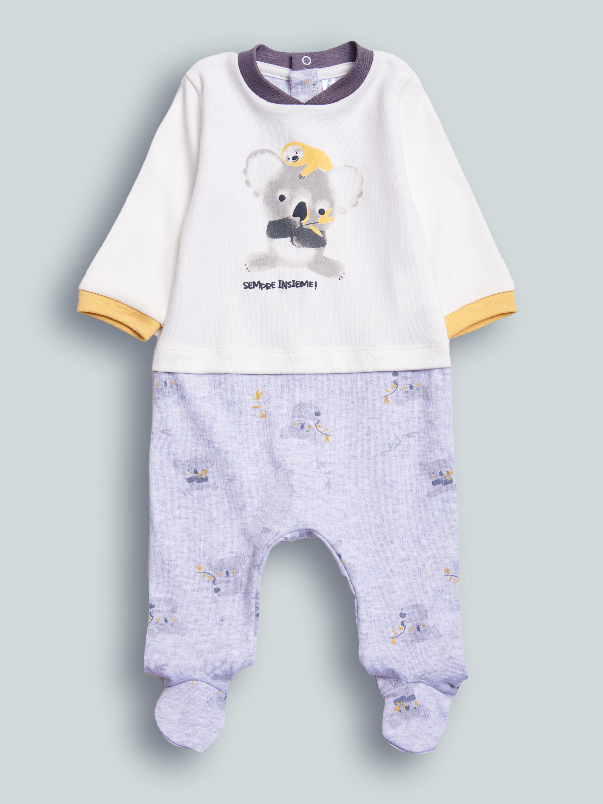 Tutina in caldo cotone effetto finto doppio, parte superiore unito con simpatica stampa e parte inferiore fantasia. Oltre all’ apertura sul retro, presenta una comoda apertura entrogamba per facilitare il cambio. Questo articolo fa parte del corredino composto da tutti gli articoli indispensabili per il tuo neonato.