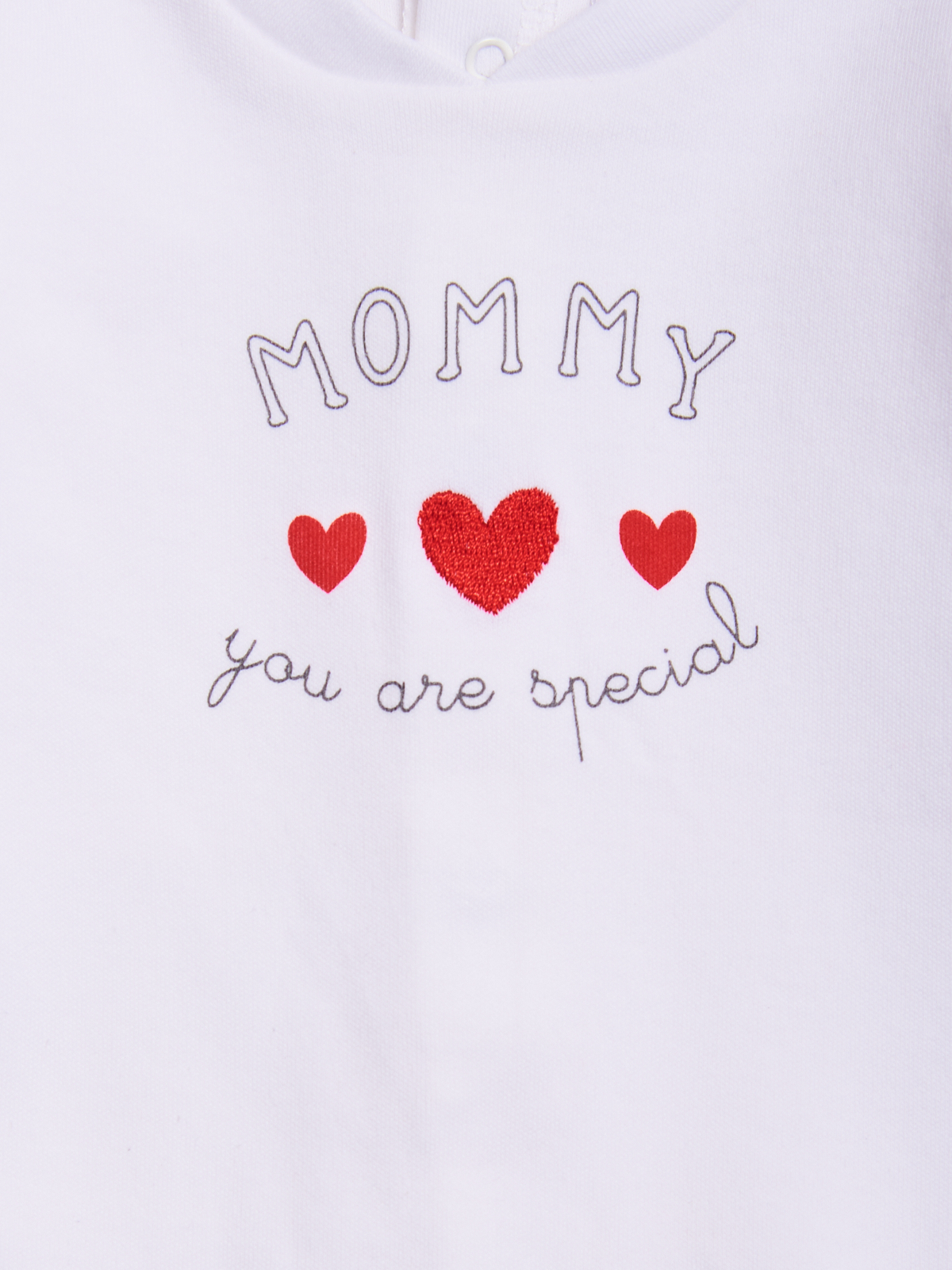 Pigiama in caldo cotone manica lunga con piedino, apertura dietro ed entrogamba con bottoni a pressione per agevolarne l’indosso. Elemento decorativo: stampa e ricamo davanti. Ideale per la nanna.