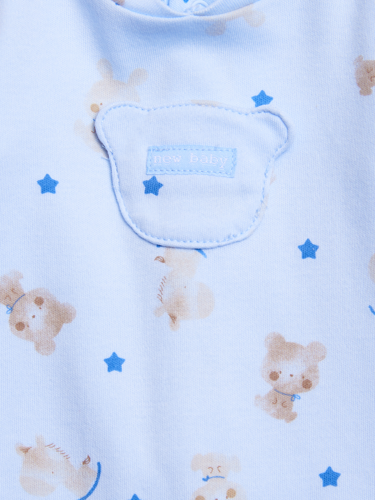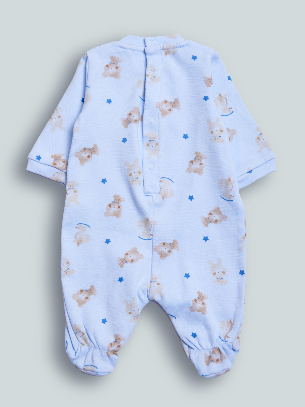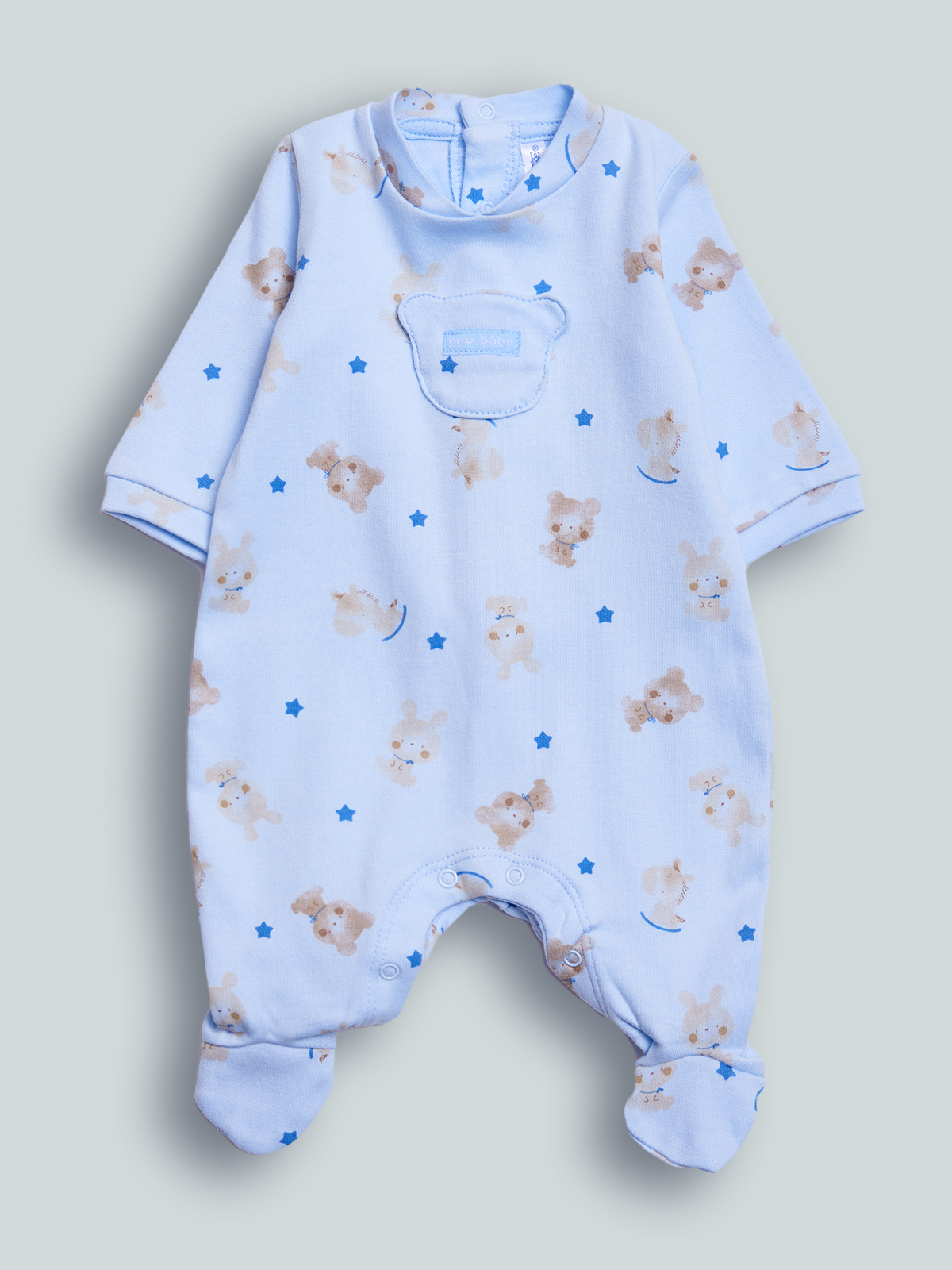 Tutina in caldo cotone stampato fantasia. Pratica apertura sul dietro ed entrogambe con bottoni a pressione per rendere più facile l’indosso. Tasca funzionale a forma di orsetto con etichetta sul davanti. Pigiamino perfetto per lo stile di tutti i giorni!