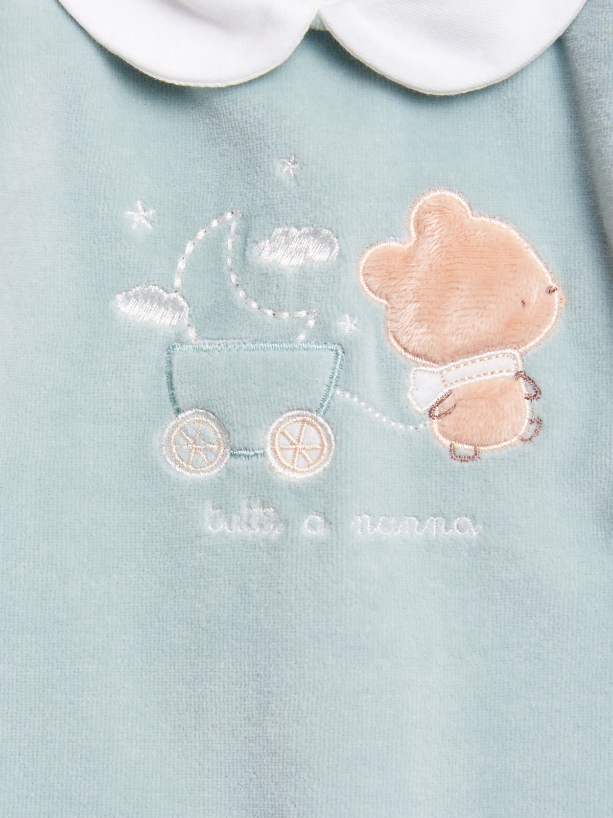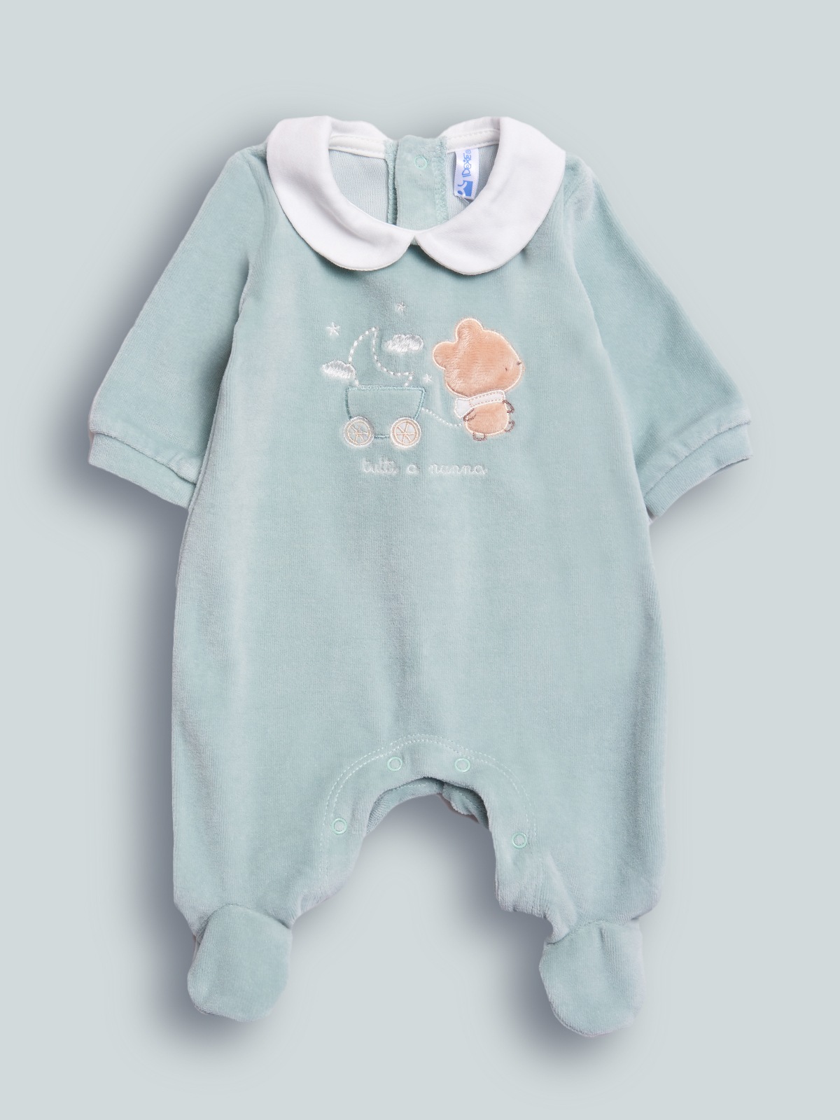 Tutina Manica lunga in ciniglia, collo rotondo, apertura dietro ed entrogamba con bottoni a pressione per agevolarnerne l’indosso. Elemento decorativo: dolce grafica ricamata. Questo pigiamino fa parte del corredino composto da tutti gli articoli indispensabili per il tuo neonato.
