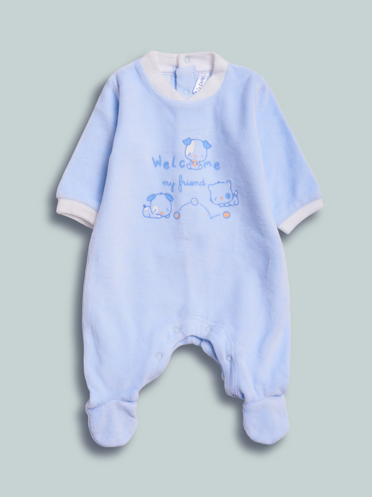 Pigiama in morbida ciniglia manica lunga con piedino, apertura dietro ed entrogamba con bottoni a pressione per agevolarne l’indosso. Elemento decorativo: simpatica stampa. Ideale per la nanna.