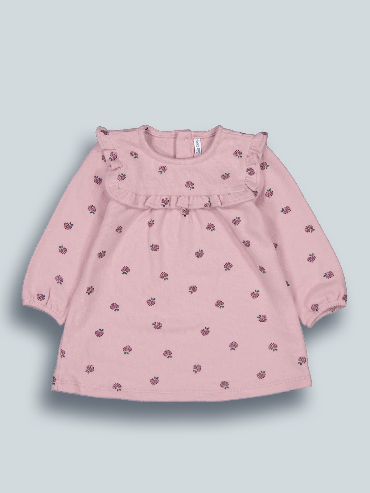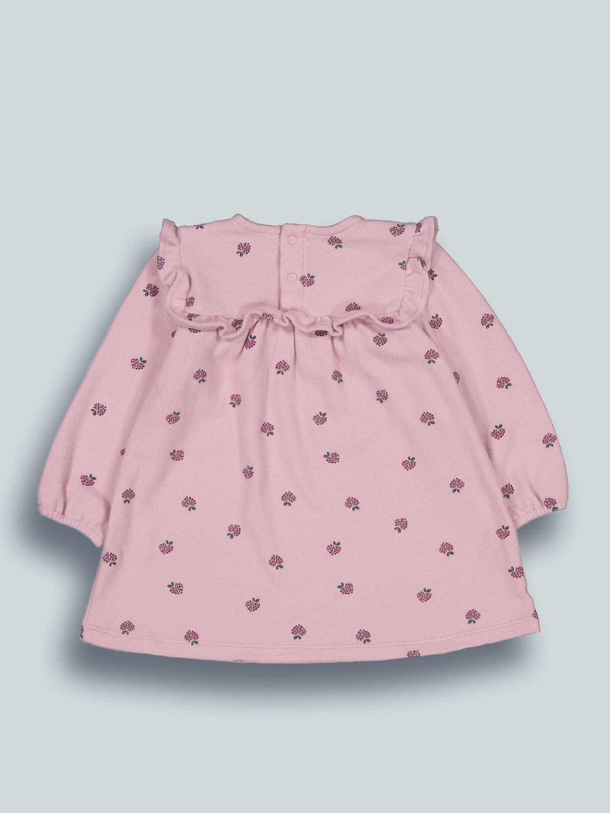 Vestito in caldo cotone manica lunga, fantasia more. Pratico da indossare grazie all’apertura sul dietro con bottoncini a pressione. Rouches in vita e al giromanica per ancora più femminilità. Ideale da abbinare ai collant della collezione per un total look sempre alla moda.